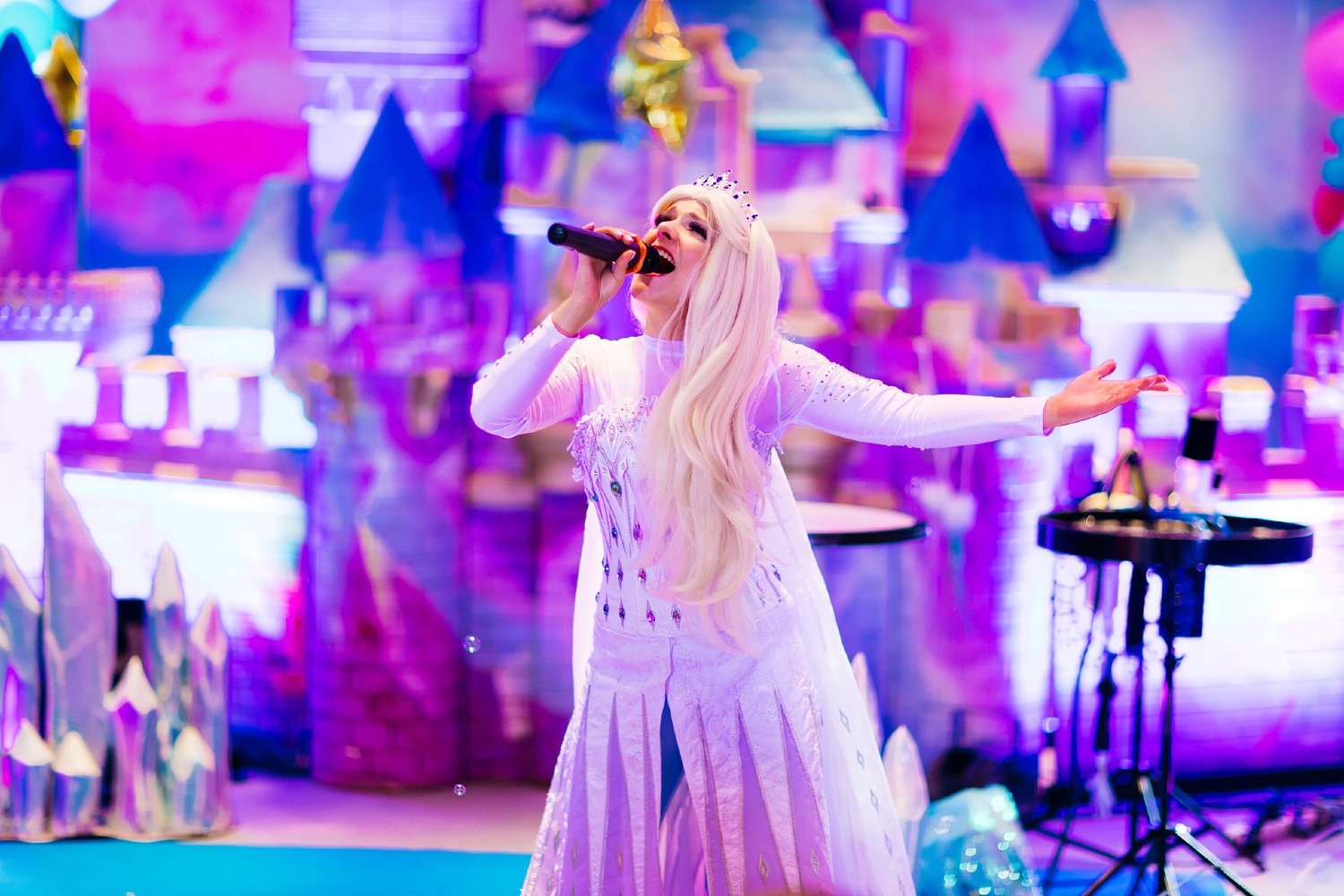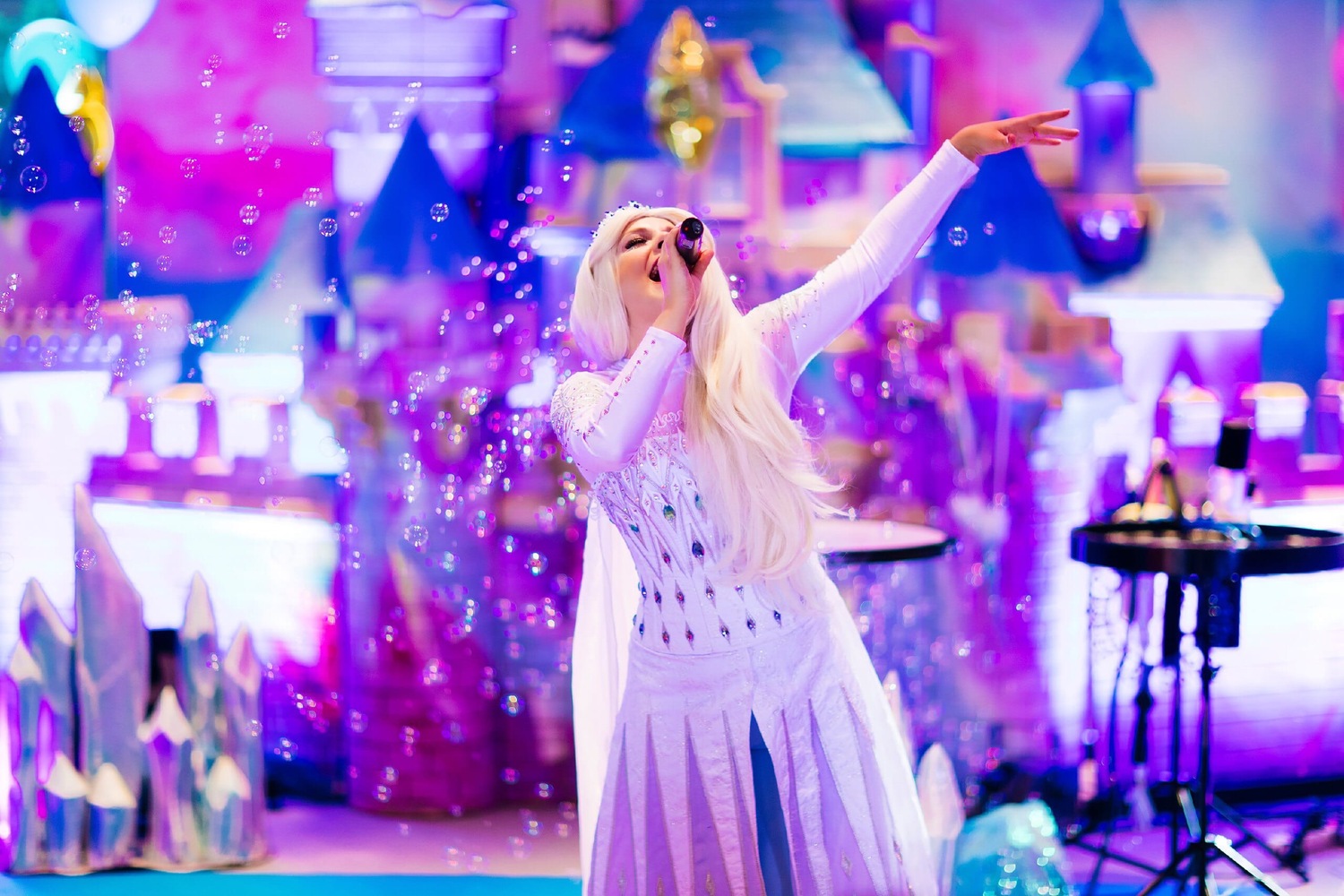 VIP Эльза Холодное Сердце Театрализованная шоу-программа мюзикл с декорациями, снегом, живым вокалом и мыльными пузырями |